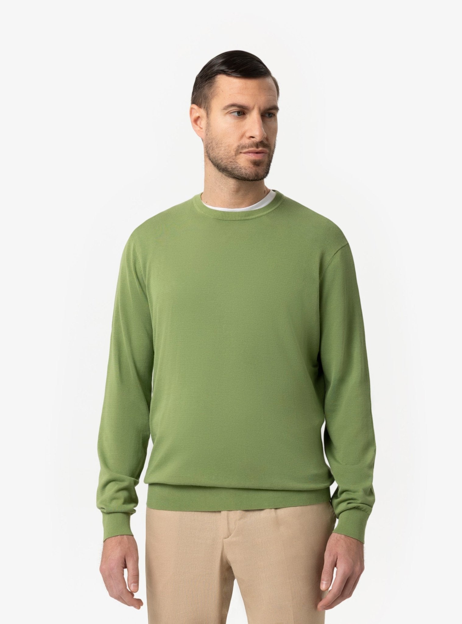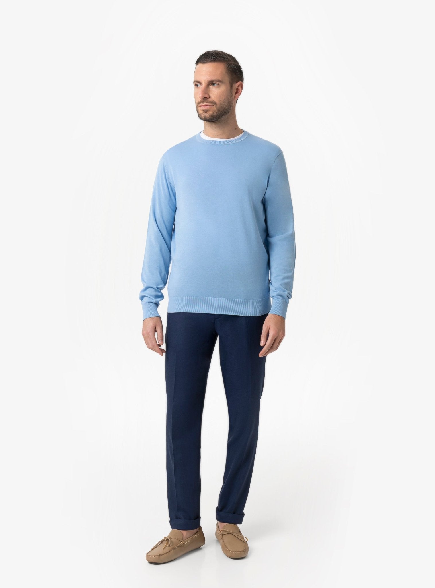 Questo girocollo si distingue per la sua capacità di adattarsi a diverse combinazioni. Indossato con un pantalone chino o con un pantalone sartoriale leggero, crea un equilibrio perfetto tra informalità e ricercatezza. Abbinato a un blazer destrutturato, diventa una valida alternativa alla classica camicia nelle occasioni meno formali, mantenendo comunque un’immagine curata e coerente. Con un denim o un pantalone cinque tasche, esprime invece un’attitudine più rilassata ma sempre ordinata.