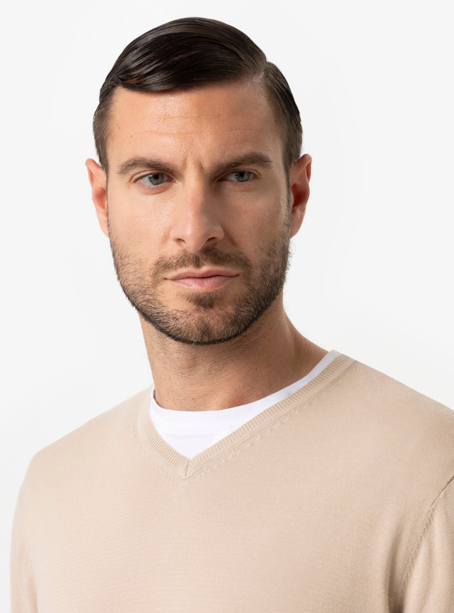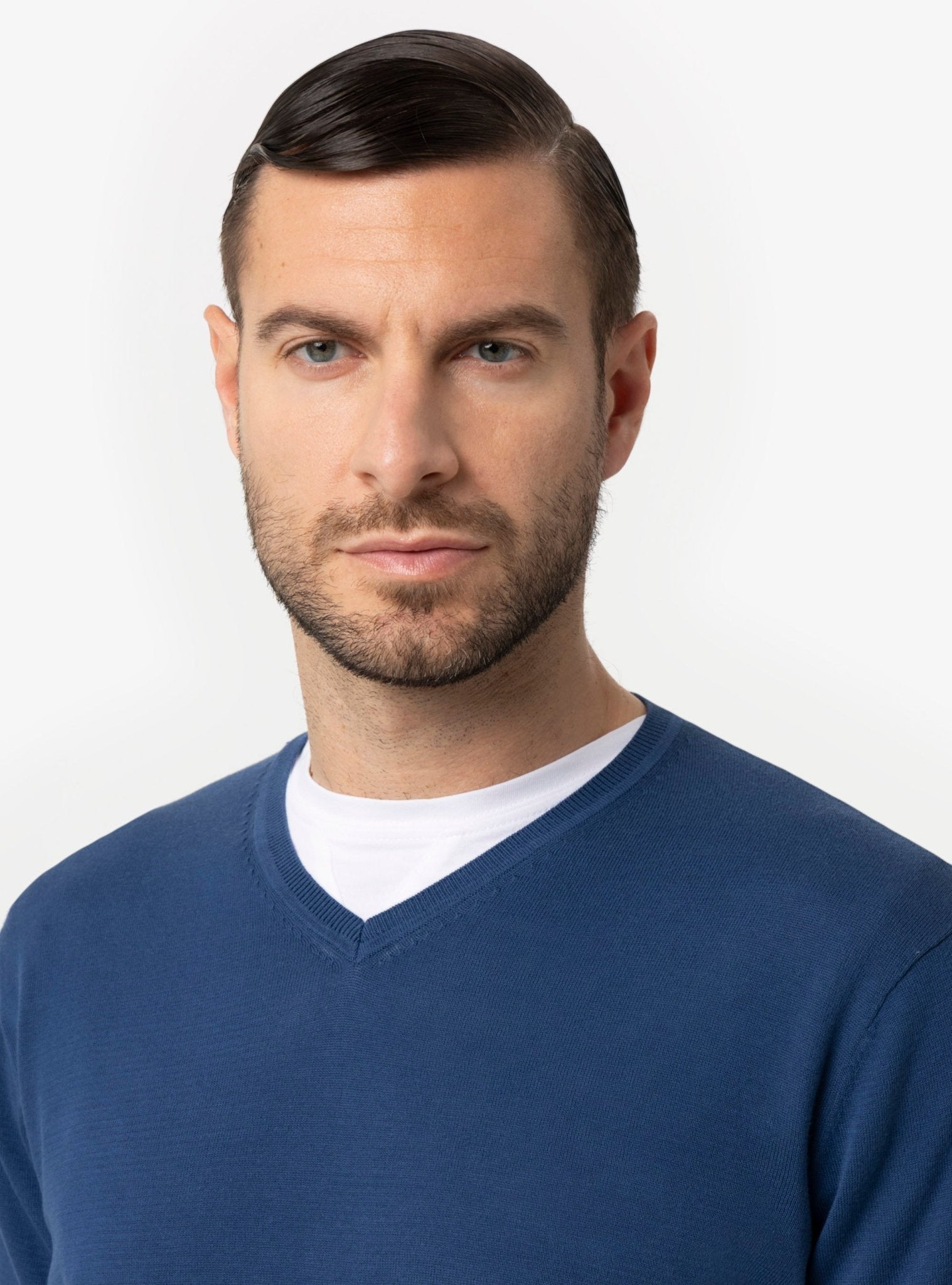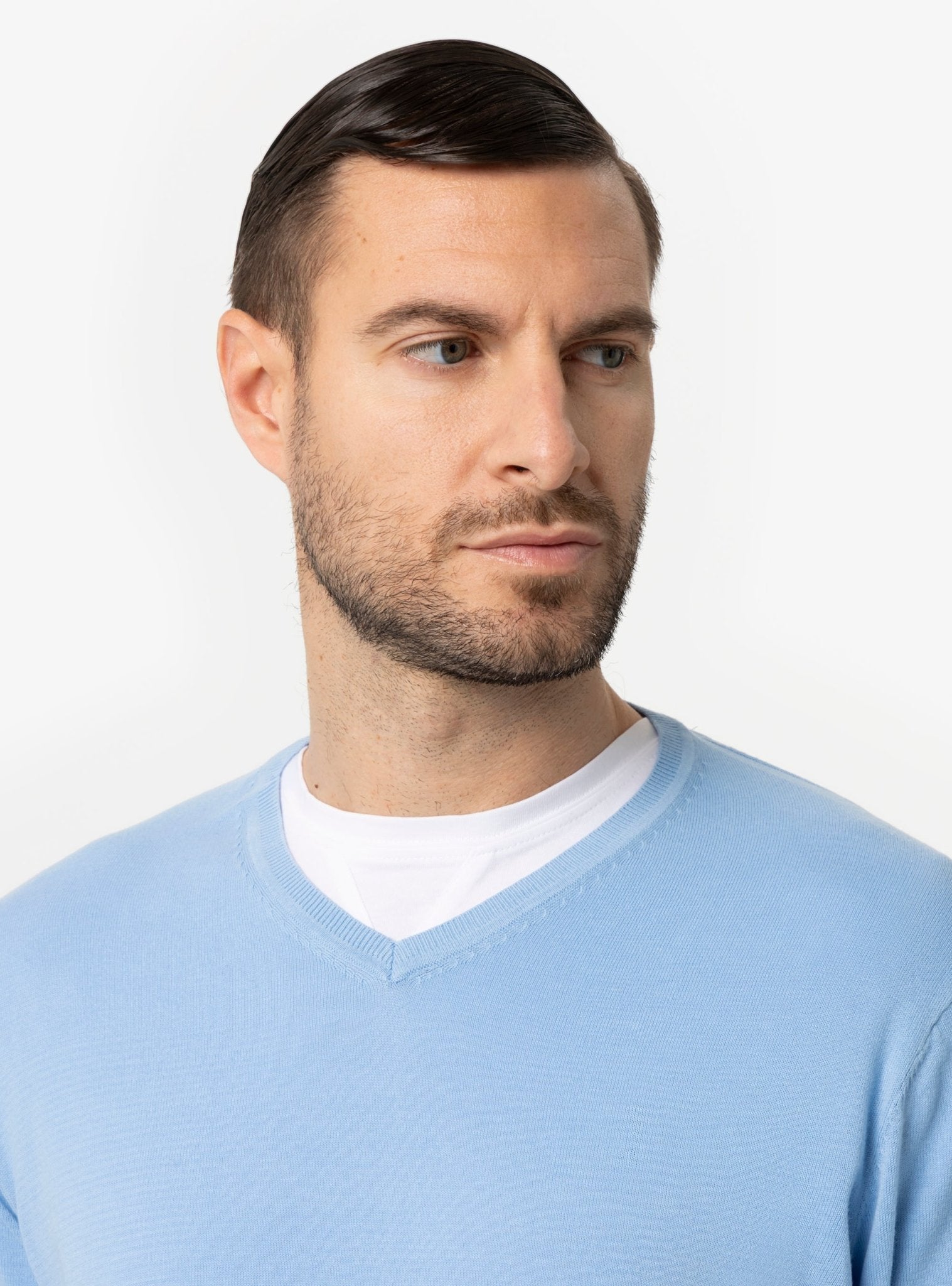 La maglia scollo V rappresenta una scelta strategica nel guardaroba maschile primaverile ed estivo. La sua struttura minimal valorizza la figura con discrezione, mentre l’apertura a V sul collo slancia visivamente il busto, creando un effetto elegante e armonico. È un dettaglio distintivo che consente di giocare con le sovrapposizioni, lasciando intravedere una t-shirt o una camicia leggera per un risultato curato ma naturale.