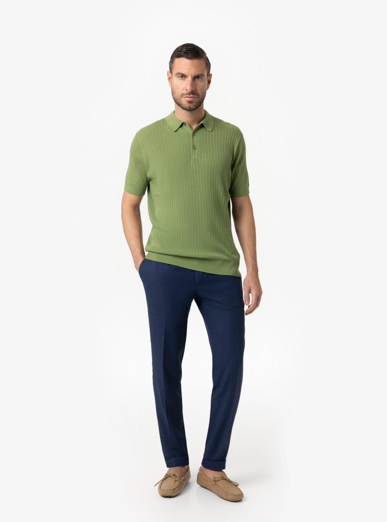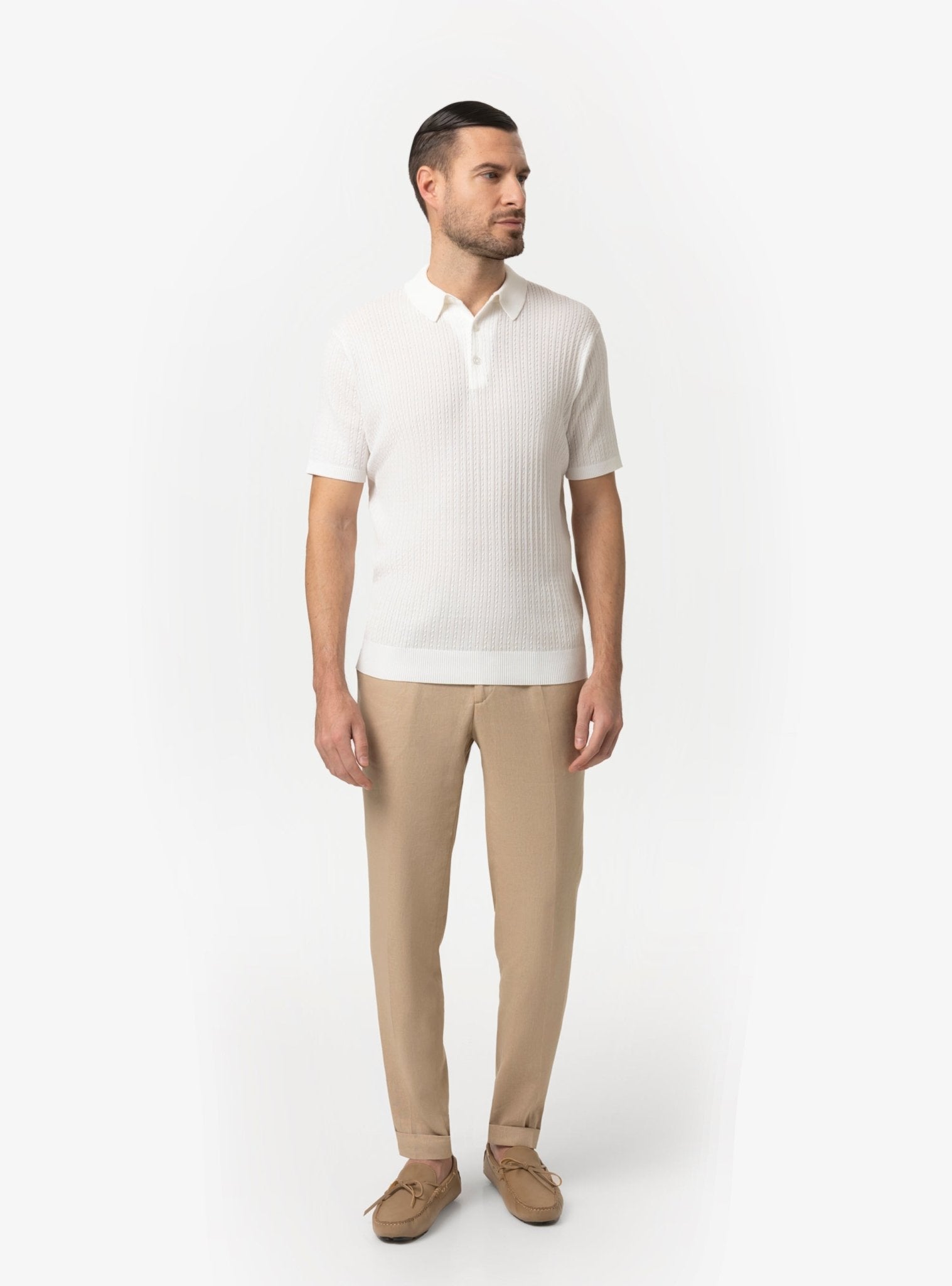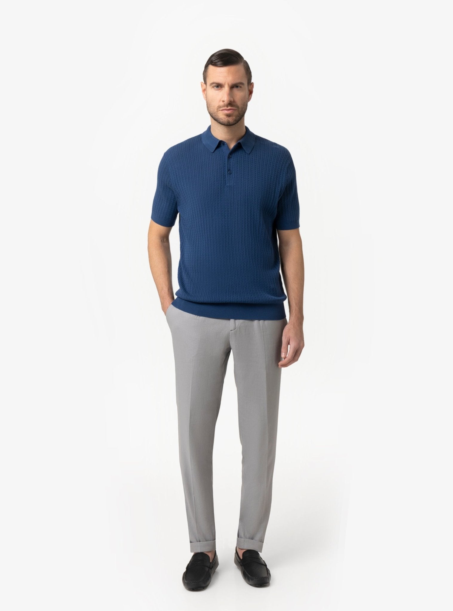 Uno dei punti di forza di questa maglia polo è la sua capacità di adattarsi a diverse situazioni senza perdere coerenza stilistica. Può essere indossata da sola per un’immagine pulita ed essenziale oppure sotto una giacca leggera per un effetto più strutturato. In entrambi i casi, mantiene un equilibrio perfetto tra comfort e raffinatezza.