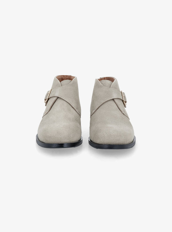 La tomaia in camoscio è piacevole al tatto e visivamente sofisticata, grazie alla sua texture vellutata e uniforme. Le cuciture tono su tono valorizzano il profilo della scarpa senza appesantirne la linea, conferendo armonia e sobrietà all’insieme. La fibbia metallica, discreta ma visibile, rappresenta l’elemento distintivo: non solo decorativa, ma funzionale alla calzata, per un fit regolabile e personalizzato.